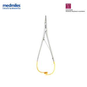 Igłotrzymacz Mathieu TC z krawędziami TC dla zwiększonej trwałości. Sprężynowa rękojeść utrzymuje napięcie bez blokady.