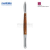 Nożyczki chirurgiczne Mayo o tępych końcach, przeznaczone do cięcia grubych tkanek, nici i opatrunków przy powierzchni ran. Półtępe końcówki chronią delikatne struktury.